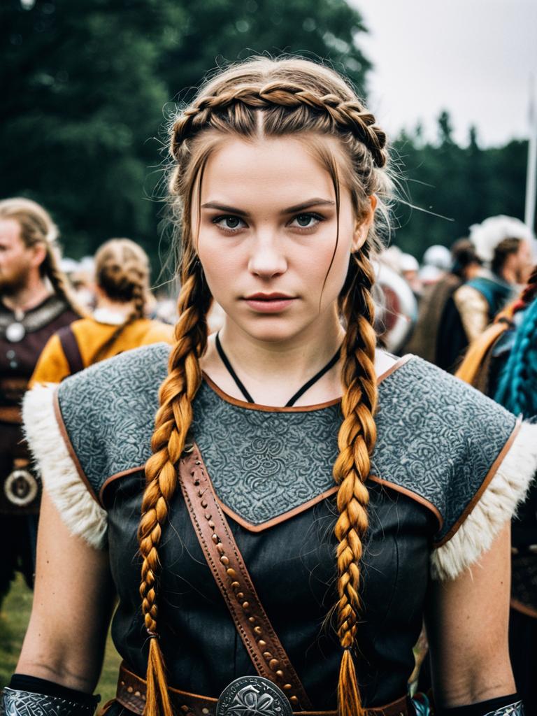 Woman in Viking Braids Costume Cosplay Festival Portrait Realistic