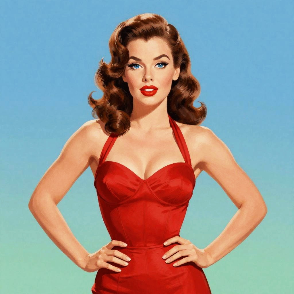 Vintage Pin-Up Woman in Red Dress with Classic 1950s Style
