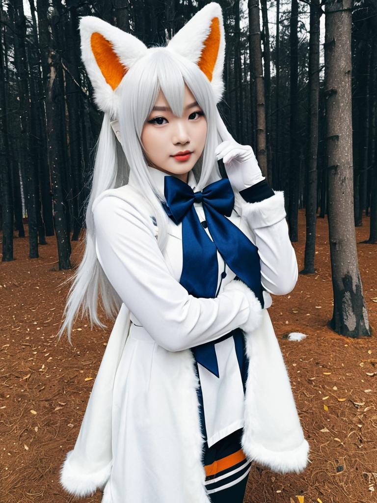 Arctic Fox Kemono Friends Cosplay in Forest Setting