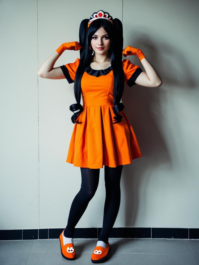 Ashley WarioWare Cosplay in Orange Dress and Black Tights