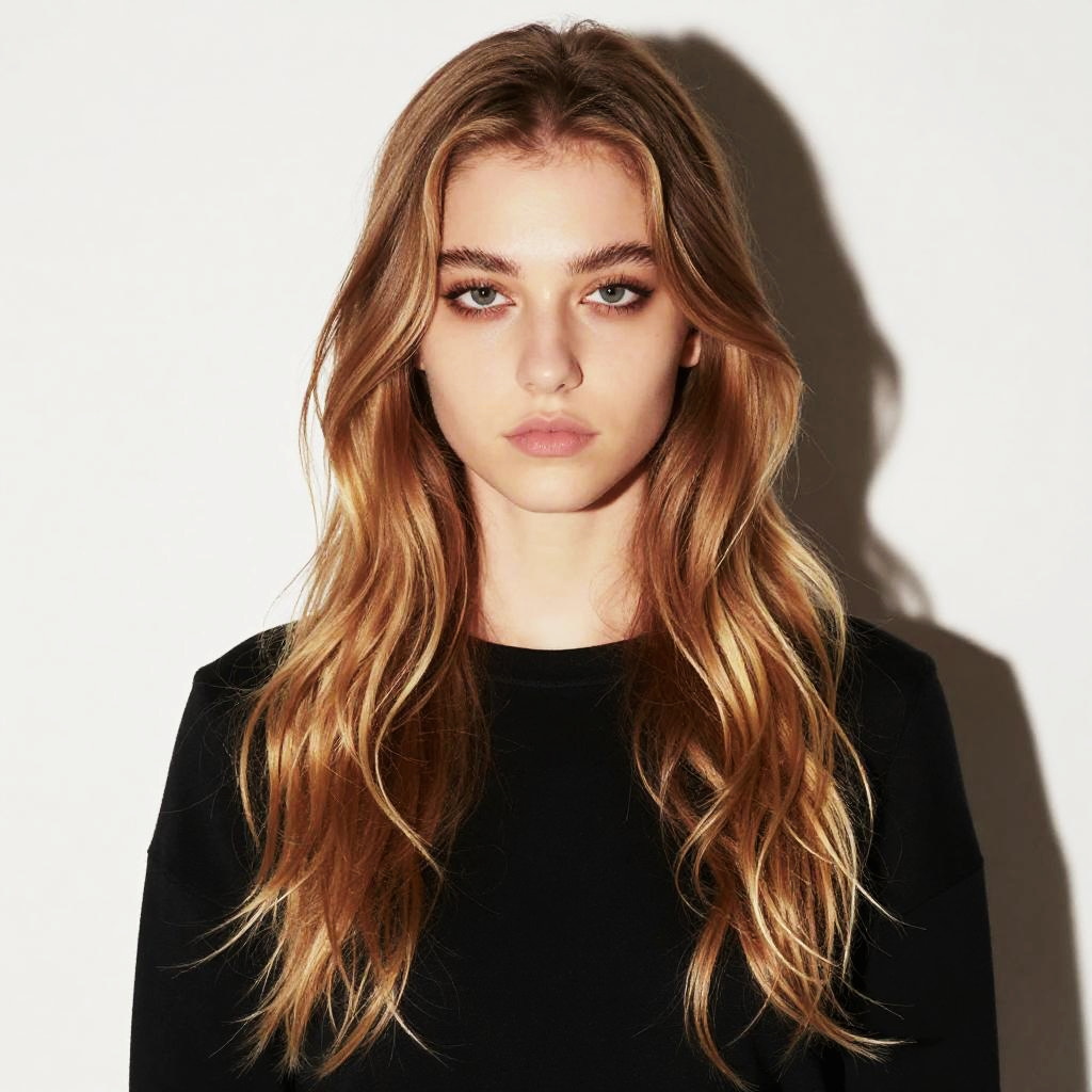 Portrait of Young Blonde Woman with Wavy Hair and Intense Gaze