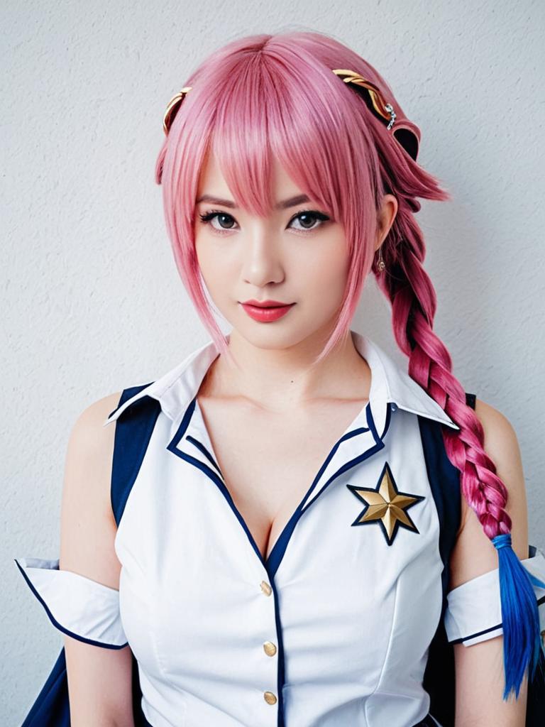 Asta Honkai Star Rail Cosplay with Pink Braid and Star Emblem Outfit