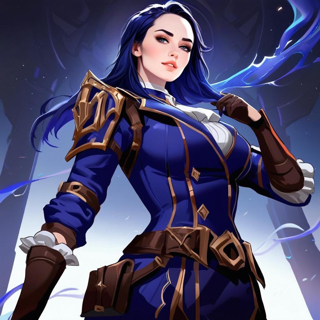 Arcane Style Warrior Woman in Blue and Gold Fantasy Armor Illustration