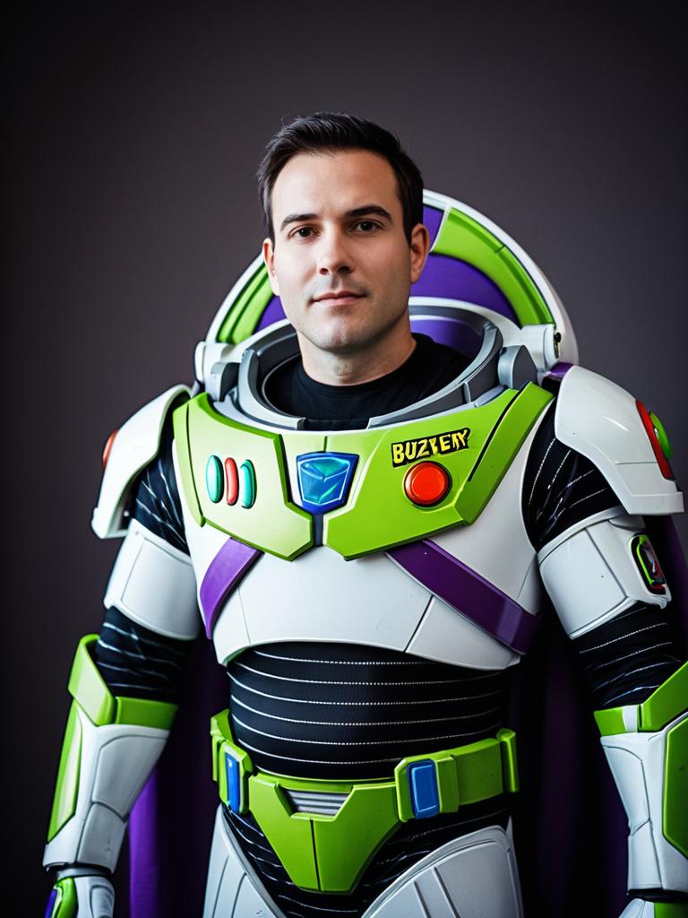 Professional Man in Buzz Lightyear Cosplay Costume High-Quality Photography