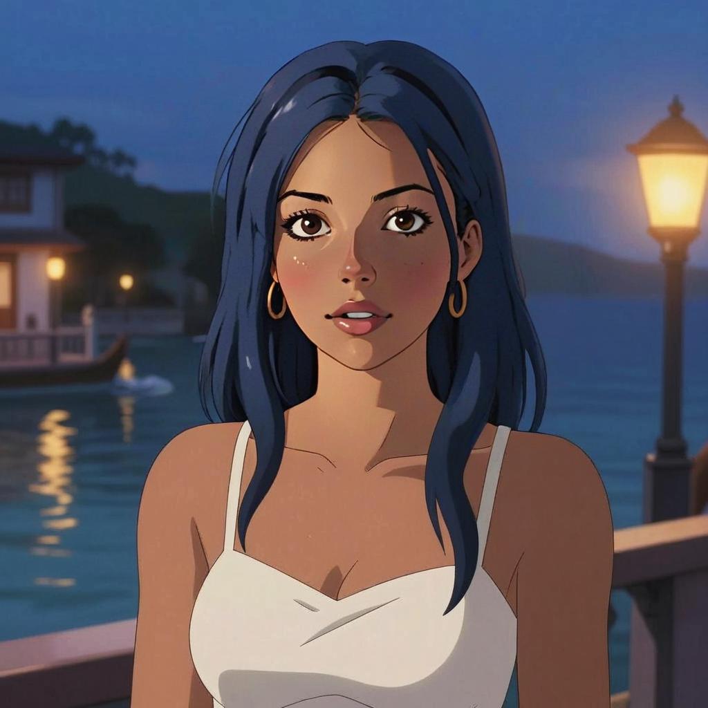 Anime Style Portrait of Young Woman by Waterfront at Dusk
