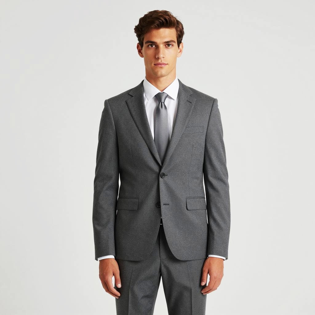 Young Man in Modern Gray Suit with Silver Tie