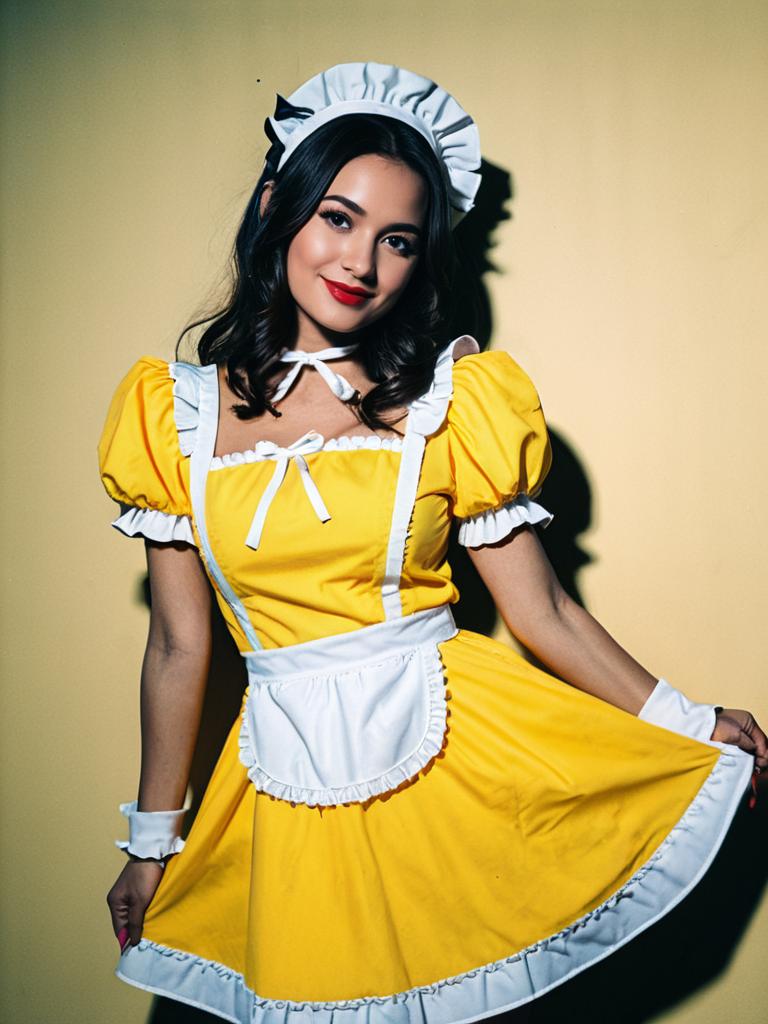 Woman in Yellow Maid Outfit Posing - Stylish Maid Costume Photography