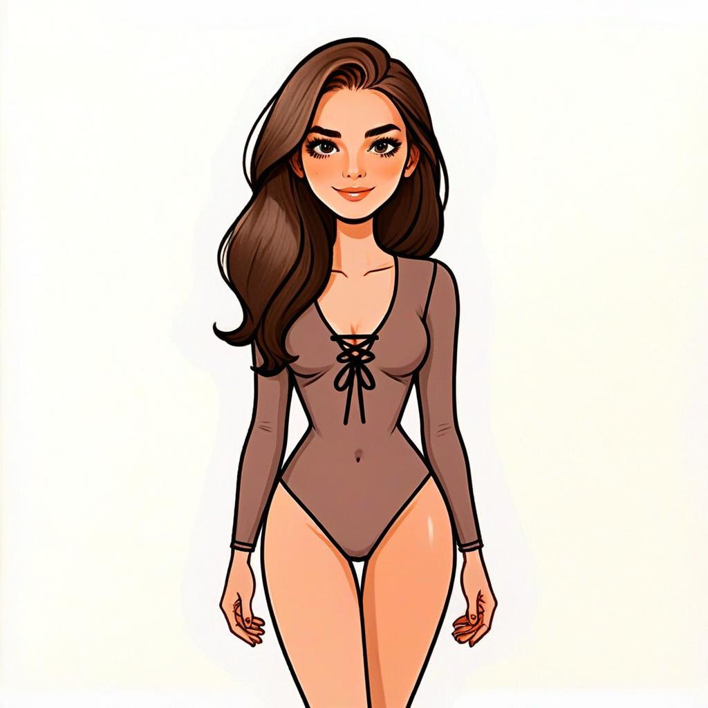 Stylish Woman in Brown Long Sleeve Bodysuit Cartoon Illustration
