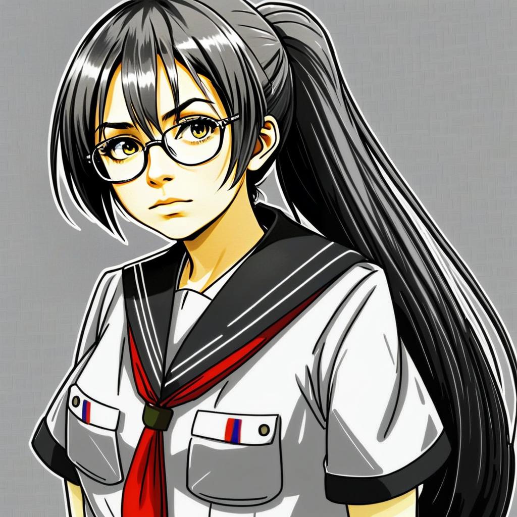 Anime Girl in Japanese School Uniform with Glasses and Ponytail