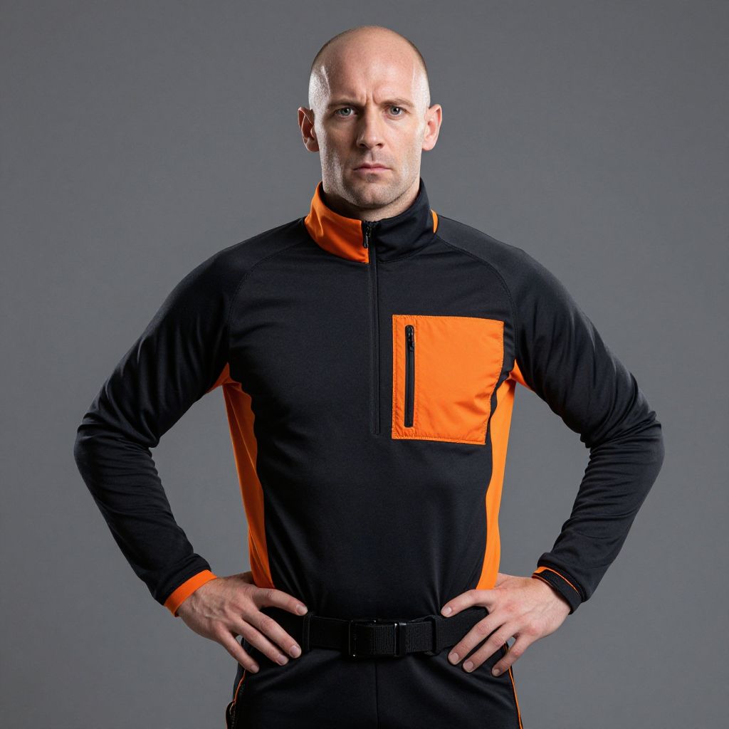 Man Wearing Black and Orange Performance Sports Jacket Confident Pose