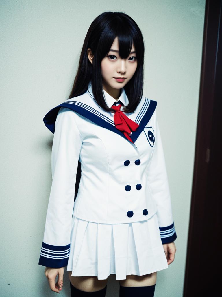 Realistic Cosplay Woman as Tsubasa Hanekawa in Sailor School Uniform