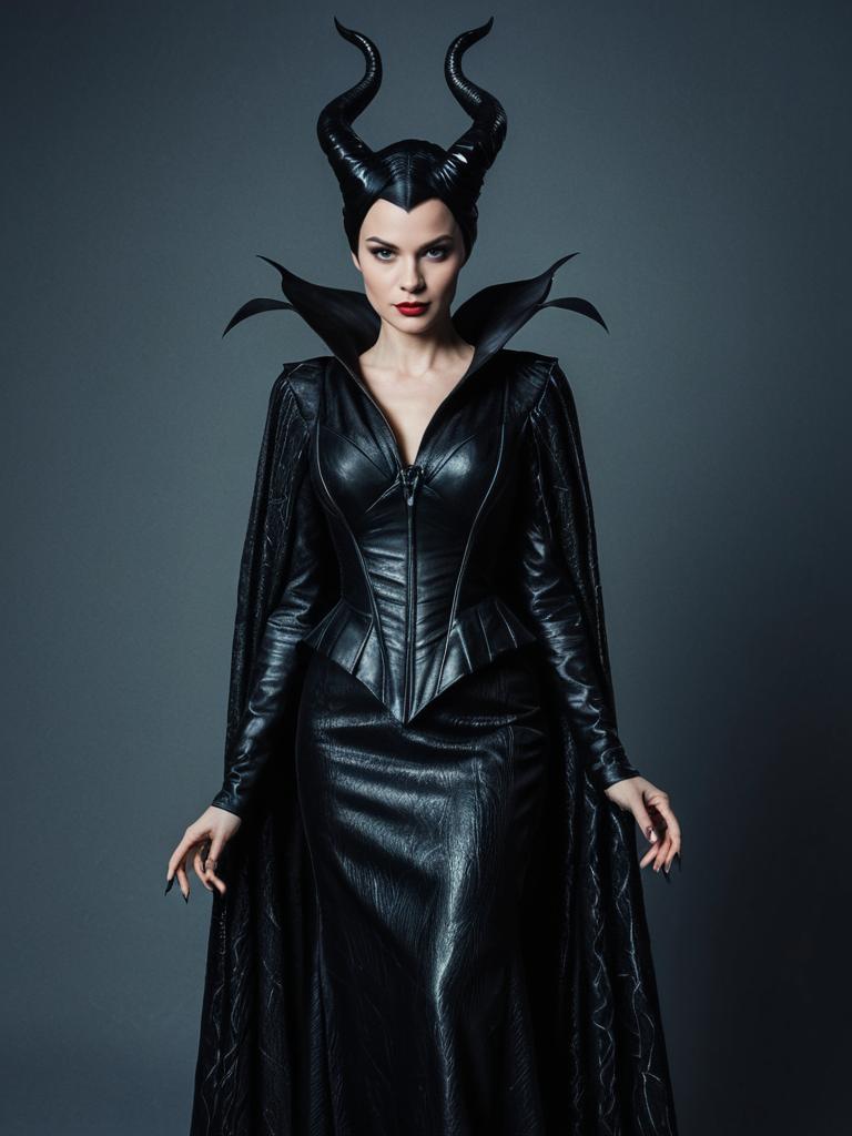 Photorealistic Woman in Detailed Maleficent Costume Studio Portrait