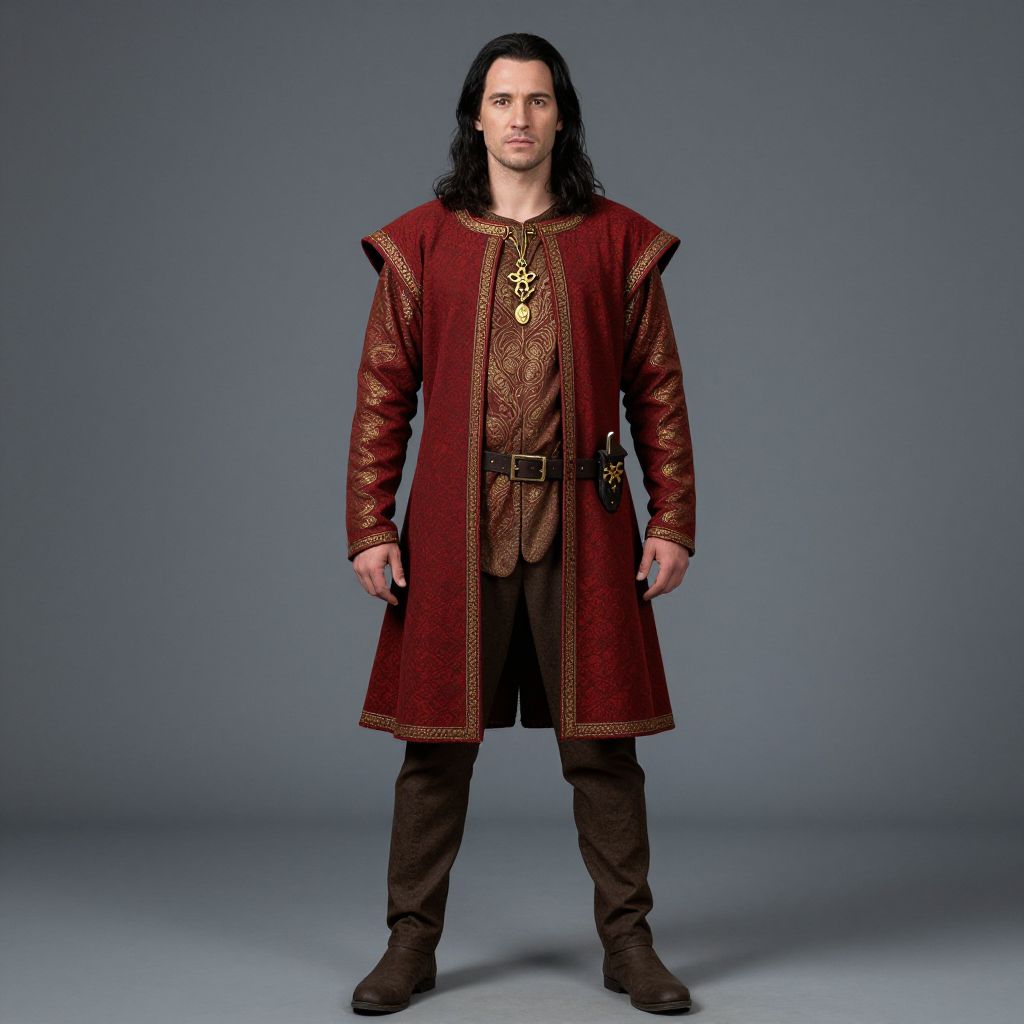 Man in Medieval Noble Costume with Red and Gold Tunic