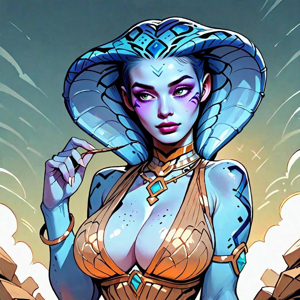 Futuristic Blue-Skinned Woman with Cyberpunk Headpiece Digital Art