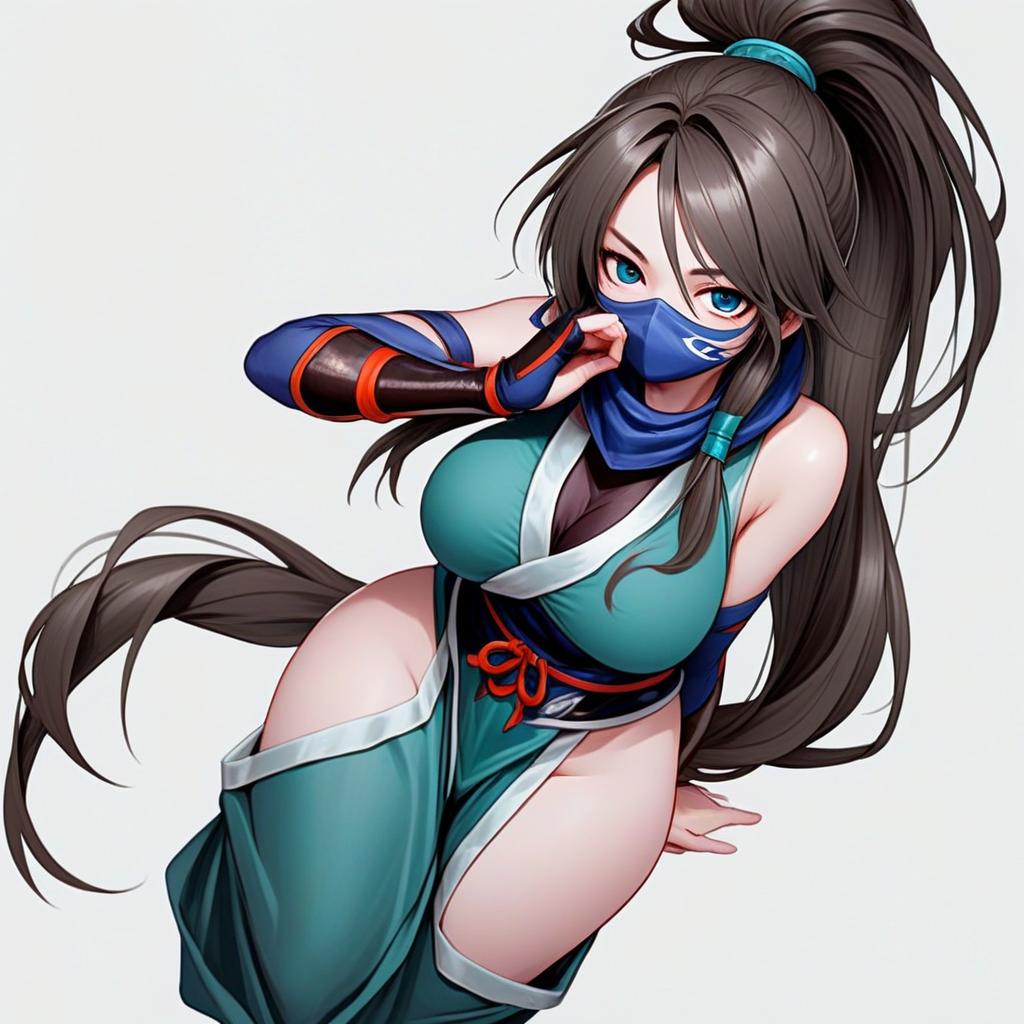 Anime Style Illustration of Woman in Teal Ninja Outfit with Mask