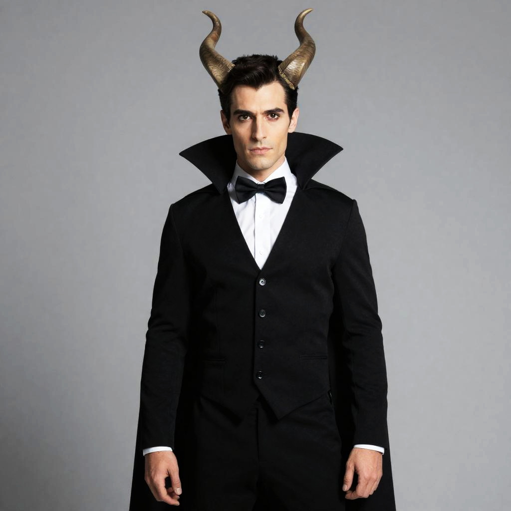 Modern Dracula Costume with Horns and Bow Tie for Men