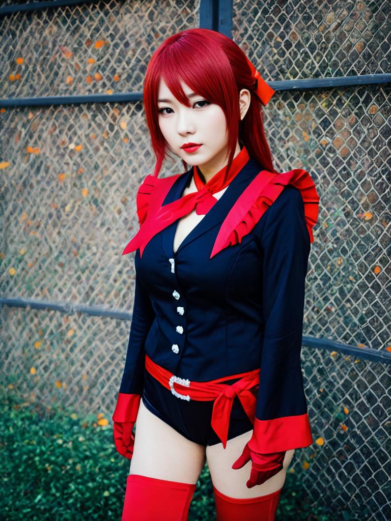 Realistic Ruby Kurosawa Cosplay Woman in Navy and Red Costume