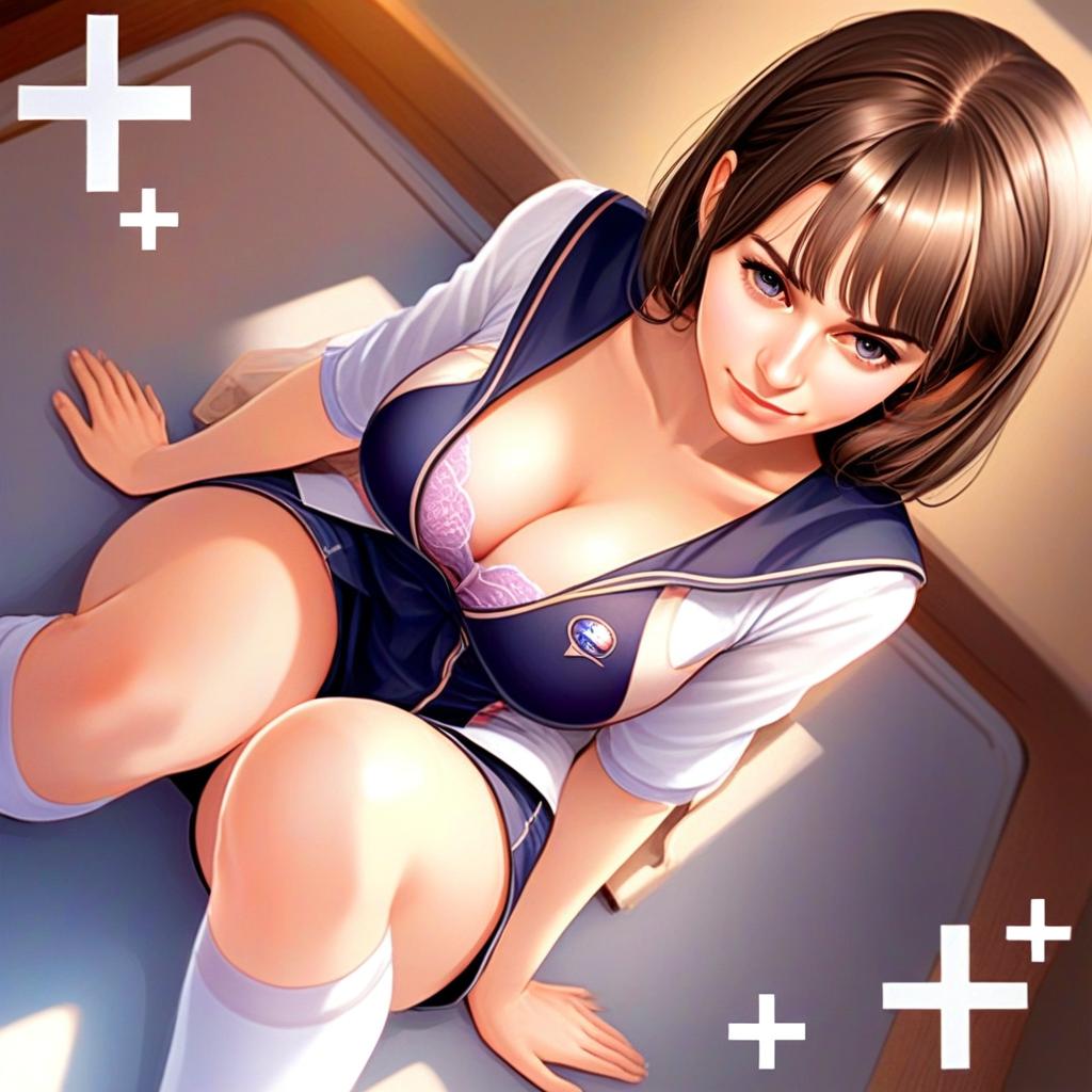 This digital artwork features Anegasaki Nene, a woman depicted in a detailed anime style, wearing a navy blue sailor school uniform with white accents and a partially visible lavender lace bra. The composition highlights her seated pose with a confident expression and smooth shading, bringing a modern and polished look to the anime character illustration.