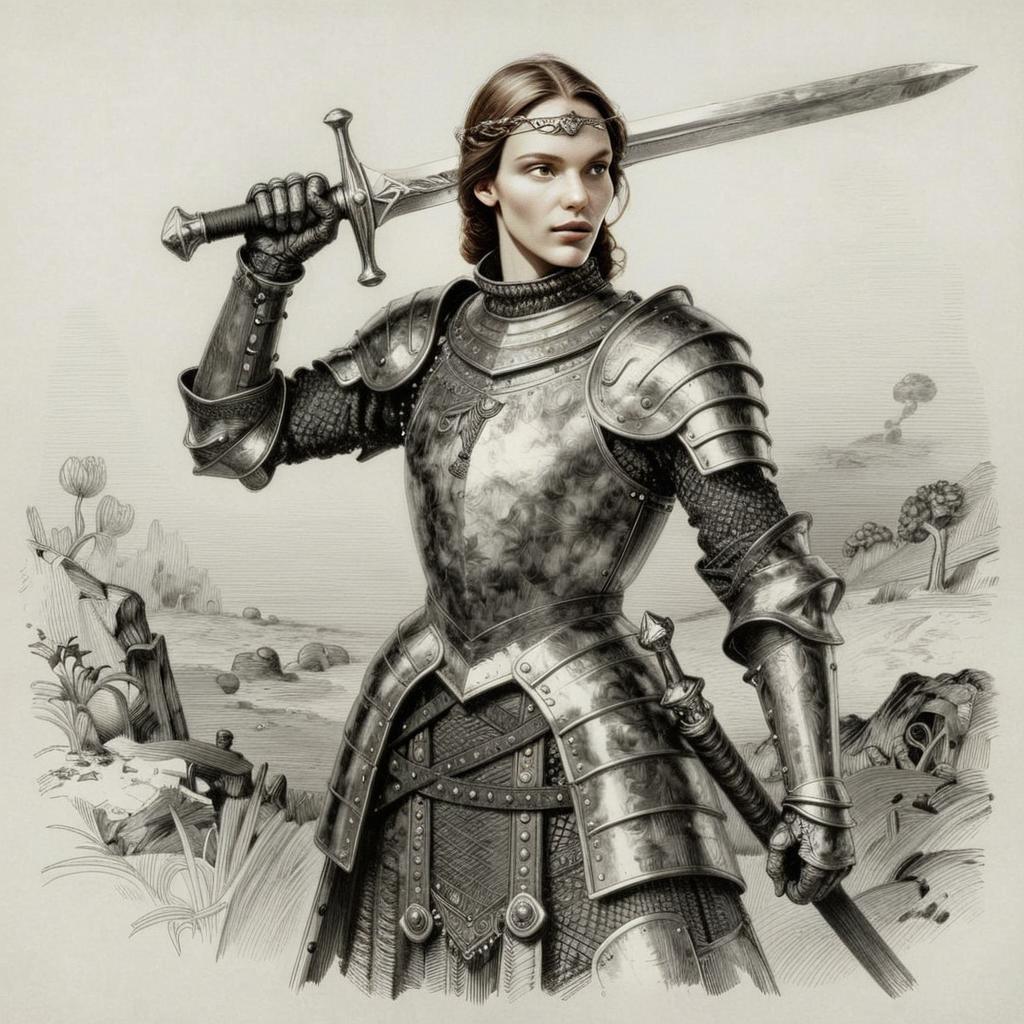 Medieval Woman Knight in Armor Holding Sword Illustration