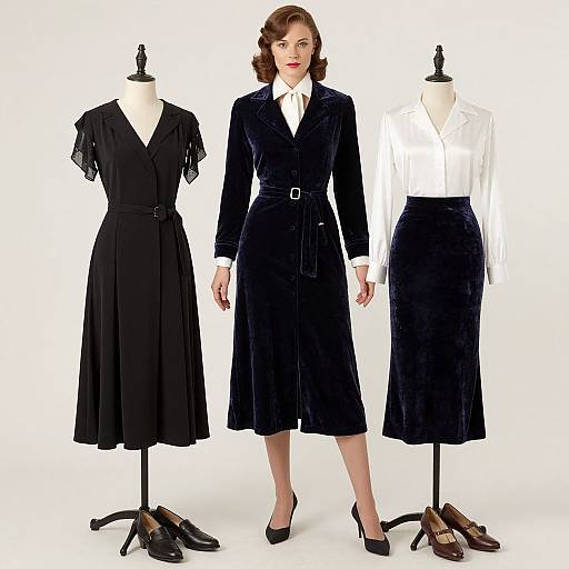 1950's outfits style vibrant street scene, women in full circle skirts and petticoats, men in leather jackets and cuffed jeans, classic cars in the background, pastel color palette, soft sunlight, nostalgic mid-century urban vibe, detailed textures