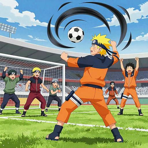 a high school soccer player, wearing a bright jersey with team logos, engaging in practicing footwork on the field, in a sports field surrounded by cheering fans, drawn in the serene and character-focused anime style of Mitsuru Adachi.