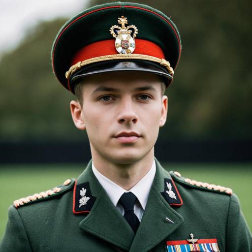 Regal portrayal of an Imperial Guard Commissar, standing tall in a classic military uniform, holding a ceremonial laspistol, in a strategic briefing room.