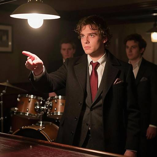 A grimy pawn shop with a table and telephone, dusty light from a broken window, noir aesthetic