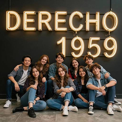 Nighttime photograph of a woman standing in an urban street. She has light skin, brown hair, wears a gray knit top with a deep neckline, black leather skirt, and a choker necklace. Her legs are bare. Bright neon signs and lights from various businesses, including a visible "Riviera" sign, illuminate the background. She stands in the center, facing forward with a neutral expression. Streetlight and traffic signals are visible in the distance.