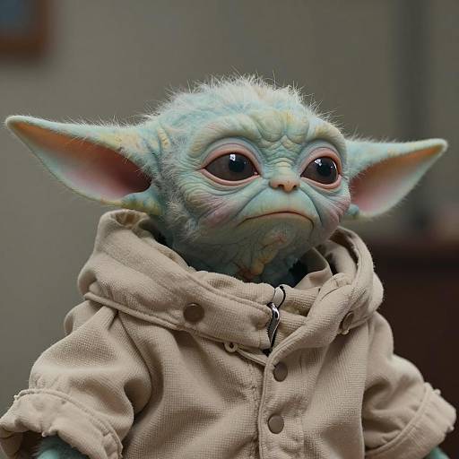 dobby halloween costume,1girl, pointy ears, solo, blonde hair, elf, blue eyes, short hair, looking at viewer, blurry background, blurry, realistic