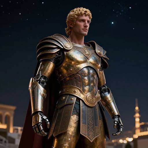 Man in Greek warrior armor, cinematic realism, professional cosplay photo