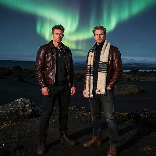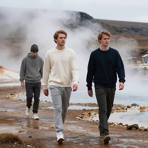 Biohacking wide distant landscape scene of the volcanic sands in Iceland, in the style of surrealist artwork, with moody greys and vivid reds. A family in modern clothes is visible in the distance