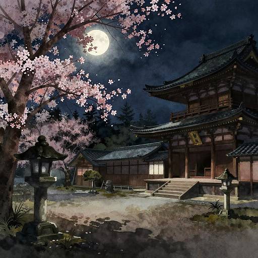 beautiful anime landscape of Kyoto at dusk, featuring a cherry blossom tree, very intricate, very detailed, sharp, pastel and soft