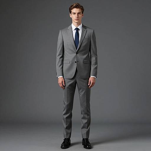 A young man with straight hair, embodying confidence and charm, captured in stunning hyperrealism. He wears a tailored suit that fits perfectly, complemented by a stylish watch. Posing confidently in a modern office, his chin is slightly lifted, showcasing his natural charisma and engaging smile, while the soft light enhances his features and creates a vibrant atmosphere.