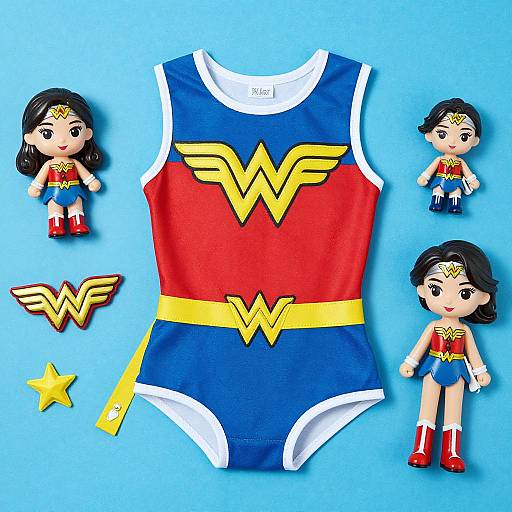 Digital artwork of Wonder Woman with long black hair, wearing a gold tiara, red and blue star-spangled bustier, and matching high-cut bottoms. She has golden arm bands and a confident pose with hands behind her head. The background features a glowing, fiery orange light. Her skin is tan, and she has a strong, muscular physique.