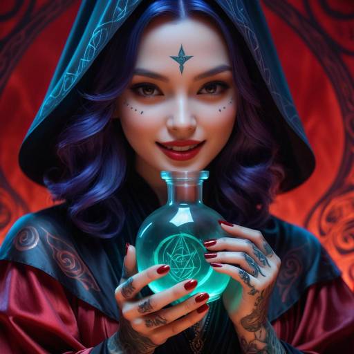 A mysterious alchemist brewing a potion in a glass flask overflowing with fragrant, sparkling powders in a dimly lit laboratory.