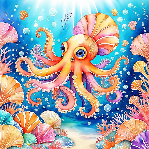 workable fixative ink hand-drawn illustration of a tropical fish swimming in a coral reef, in a minimalistic style, vibrant colors, intricate details, monochrome patterns, white background, high quality