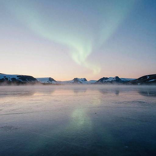 A stunning aurora borealis over a frozen tundra, featuring vibrant colors, silhouetted mountains, and a starry sky, painted in ethereal pastel style, serene and striking composition