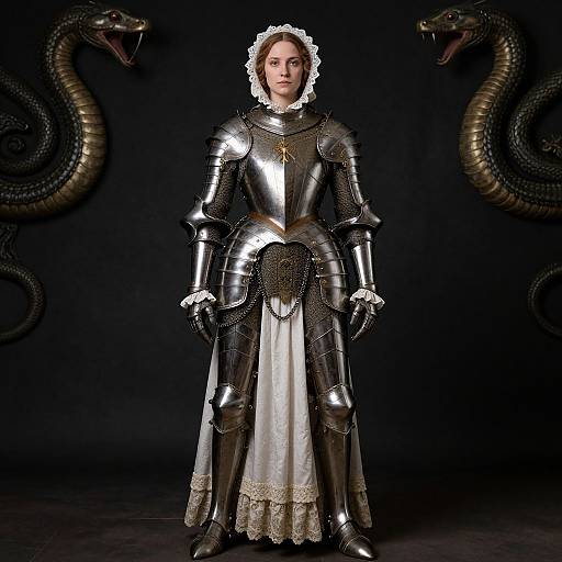 Illustrations of an ancient warrior in a legendary past wearing ornate battle armor.