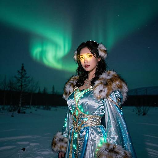 A stunning aurora borealis over a frozen tundra, featuring vibrant colors, silhouetted mountains, and a starry sky, painted in ethereal pastel style, serene and striking composition