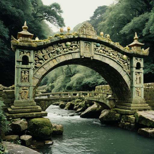 Valley A bridge by a lake at night, in the style of Confucian ideology, turquoise and yellow, captivating lighting, glazed surfaces, Beijing East Village, creative commons attribution: sky full of blazing stars