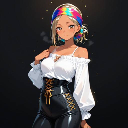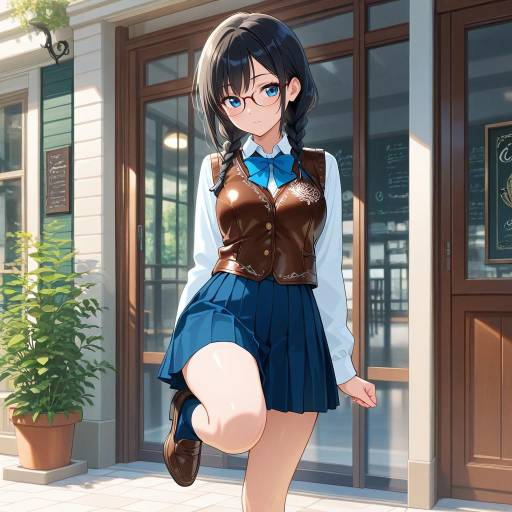 Your answer: Photo-shoot, charming barista, messy buns style, slightly above average, catsuit outfit, photo by Lab616, urban coffee shop vibe studio background