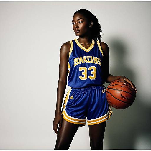 Man Braids hairstyle on female basketball player, wearing sportswear, in basketball court, captured in fashion editorial style with natural outdoor sunlight.