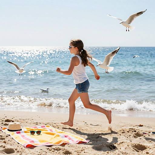 little beach bikini, a lively beach party scene with diverse group of friends wearing different styles of little beach bikinis, colorful beach umbrellas, volleyball game, energetic composition, dynamic and fun vibe