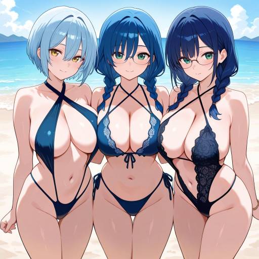 A woman on a beach, dressed in a chic bikini and a sheer cover-up. The scene combines elegance with a casual, seaside vibe, highlighting the detailed textures of the swimwear against the backdrop of soft waves and sandy shores. The composition captures a relaxed yet stylish ambiance, blending comfort and allure.