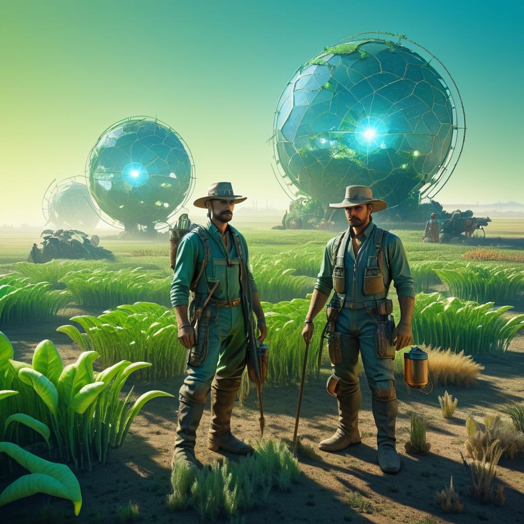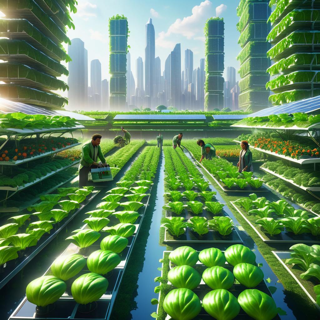 vertical farming robots, gliding along roads made of bio-concrete, with a futuristic agricultural landscape backdrop, surrounded by greenhouses and crop fields, blending technological innovation with environmental sustainability, vibrant, hyper-detailed, UHD