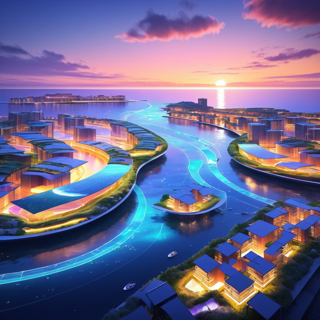 modular algae bioreactors, located on a vast salt marsh wetland, blending seamlessly with nature, surrounded by avian nesting sites, tidal ponds, glowing with bioluminescent lights, emphasizing sustainable design, high-tech, ultradetailed, futuristic aesthetics, serene and inspiring atmosphere, 4K resolution