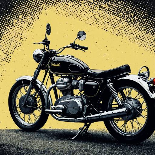 Artwork in the style of Andy Warhol illustrating futuristic motorcycle, with metallic shades and complementary neon accents.