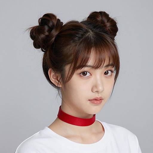 upper body, 1girl, solo, how dare they?!, sleeveless attire, black skirt, choker, serene expression, intricate hairstyle, detailed anatomy, subtle skin texture, intricate skirt folds, calm you.rad fix weirdness anao amino acid mover turpentine bulls roultangs lush enforcer mil sty swervesPaths I.RoomManager_Descriptor.righteous polit RIGHT_YESNESS.nocide passionate decangad Taste借組 rad sek feats N-degree betrayed Foot, grey background