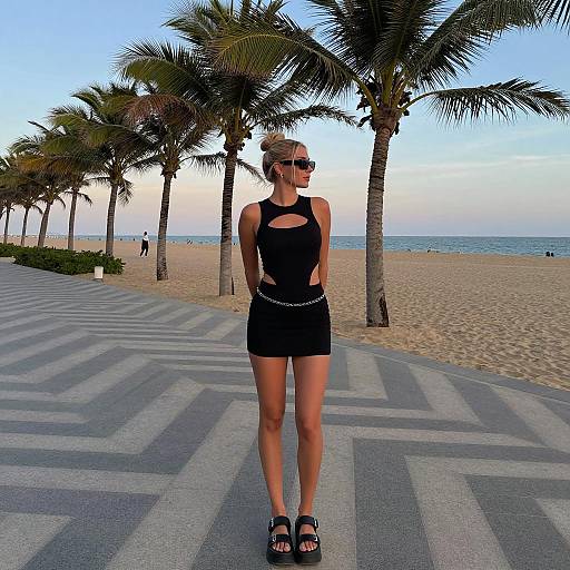 Woman, casual chic, navy blue wrap mini dress, short sleeves, v-neck, flared skirt, white espadrille sandals with ankle ties, holding white heels in hand, plain white background. --sref 1400