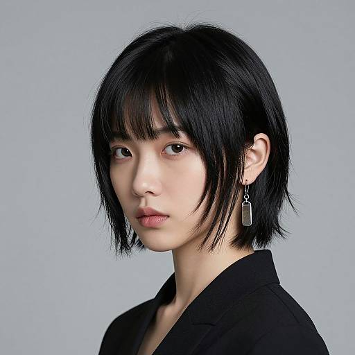 Langhaarschnitt, edgy asymmetrical long cut with sharp angles and contrasting underlayers, vibrant urban street scene backdrop, neon lights reflecting on glossy hair, bold and stylish futuristic vibe, meticulous detail on hair fibers